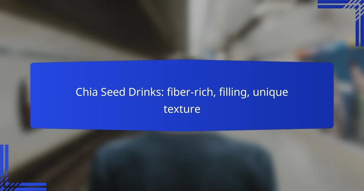 Chia seed drinks are a delicious and nutritious option, packed with fiber and offering a unique gel-like texture that enhances the drinking experience. These beverages, which include refreshing varieties like chia seed lemonade and smoothies, are not only filling but also support hydration and digestive health. Incorporating chia seed drinks into your diet can help promote satiety and contribute to overall wellness.