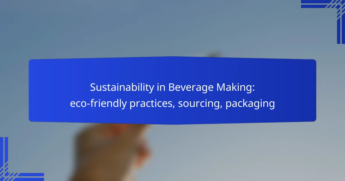 Sustainability in beverage making is essential for reducing environmental impact and appealing to eco-conscious consumers. By implementing eco-friendly practices such as sustainable sourcing, efficient production methods, and responsible packaging, companies can minimize waste and resource consumption. This approach not only supports local economies but also enhances product quality and brand reputation.